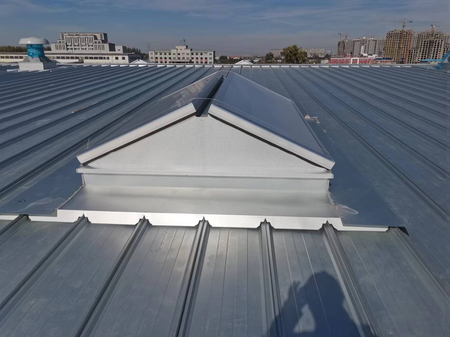 采用三角上开窗设计。独特的三角形造型不仅为建筑外观增添了别样的工业美感,还因三角形的稳定结构保障了天窗的牢固耐用。上开窗设计操作简便,开启后能大幅提升通风效果,在日常生产中可及时排出车间内的热气和废气;遇到紧急情况时,可作为有效的排烟通道。同时,天窗的采光性能良好,能够充分引入自然光,为车间营造明亮的工作环境,降低照明能耗,提高生产效率 。